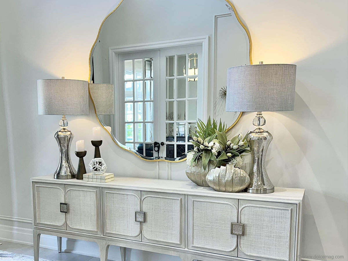 What truly sets Kimmberly Capone Interior Design apart is the company’s personalized service. From 3-D presentations to an accessory program that includes the final touches of lamps, art, mirrors, and pillows, her team ensures every detail is curated. As part of the accessory program, they bring the aforementioned items to the client’s home, set them up accordingly, and reveal the completed room. The client can then purchase the accessories they like on-site. Clients experience a simple step-by-step shop-at-home service that many other designers do not offer.