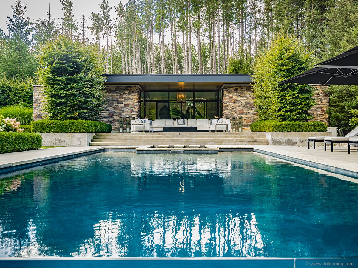 “Where the house is positioned in North Caledon allows the homeowner to embrace the surrounding nature fully,” says Bonellos. You are led from the property’s front gate down a winding road surrounded by tall trees and greenery. As you near the end of the path, you encounter the country estate, prominently situated on the high, elevated plain, which offers scenic views and fresh air that cannot be beat.