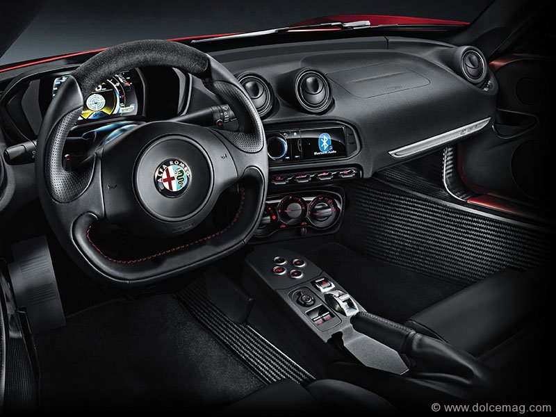 Having seen the pre-production car last summer, let me assure you that the 4C is one of the sexiest cars to come out of Italy in a number of years. Alfa is quick to reference the relationship between the 4C’s styling and that of its classic 33 Stradale, and I must admit it isn’t far off the mark. The coupe’s curves flow perfectly from front to rear, and its flared fenders and bold-nose profile give it just enough of an aggressive edge without trying too hard. Here’s the best part of the 4C’s exterior design — there is absolutely no mistaking it for anything else on the road. Whether you choose the classic Alfa Romeo red, or a slightly more subtle white or black model, there will be no shortage of people stopping you to ask, “What is that thing?”