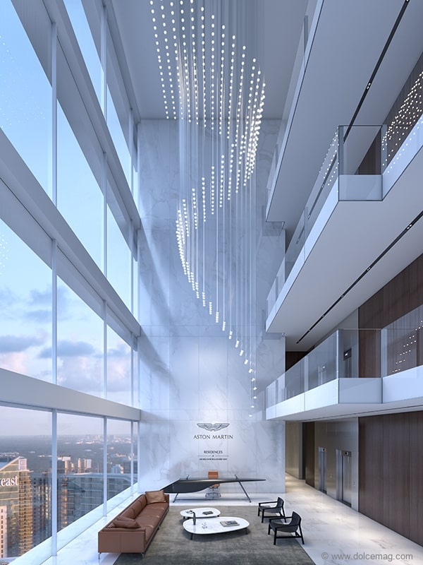 Another thing DBX owners won’t have to worry about? Getting their vehicles scratched in a parking lot. There are some amazing storage amenities being planned, with super-garages in the building’s parking structure — individual spaces for owners to personalize, so they can enjoy their cars. They can work with Aston Martin designers to create customized flooring, wall coverings, lighting and distinctive cabinetry.