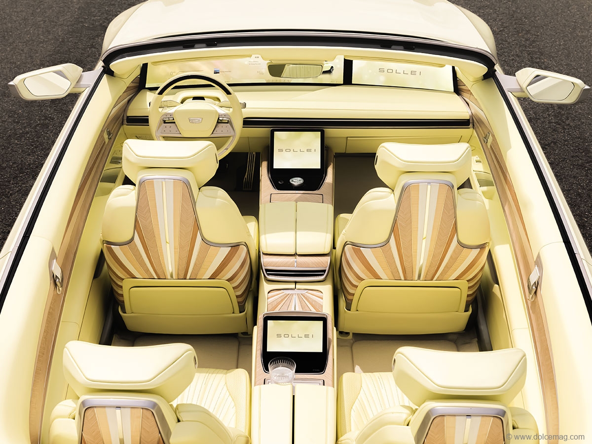 Celebrating Cadillac’s bold colour heritage, the exterior of SOLLEI is finished in Manila Cream, a colour formulation a tribute to the brand’s history and originally used on Cadillacs in 1957 and 1958. This ode to the past and revived colouring required meticulous hand-painting by Cadillac craftspeople.