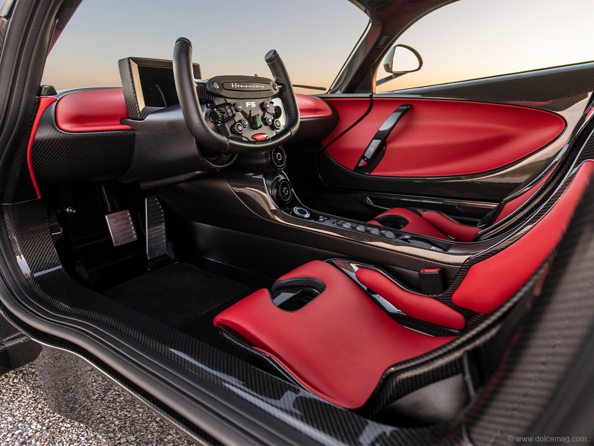 When the driver finds themselves in the two-place cockpit of the Venom F5, it feels no different than a pilot operating a fighter jet. Everything about the interior promotes control, simplicity and maximum driver visibility. In short, power, longevity and a visceral driving experience are what Hennessey delivered. For them, the American dream never sleeps.