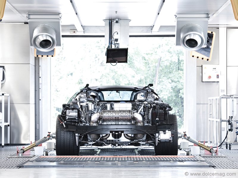 One or two Bugatti Veyrons are produced each week at the Chateau St. Jean production facility. Whereas conventional automobile plants run at high speeds, spitting out thousands of cars each day, Bugatti’s production follows a much slower pace, reflecting the special made-to-order cars. Each Bugatti Veyron is specially hand-assembled by eight carefully selected individuals who are highly trained to put together all the main components that make up each car. Each car will take up to three weeks of assembly due to the careful production procedures put in place to ensure the highest quality and inspection. There is no assembly line to speak of, only specially designed workstations where the Veyron and Grand Sports start to take shape. Unlike a typical auto assembly plant, crammed full of equipment, the Bugatti’s spacious production facility is extremely neat and modern. The bright atmosphere comes from the natural lighting that emanates from the full-length floor-to-ceiling windows and bright epoxy coated floors.
