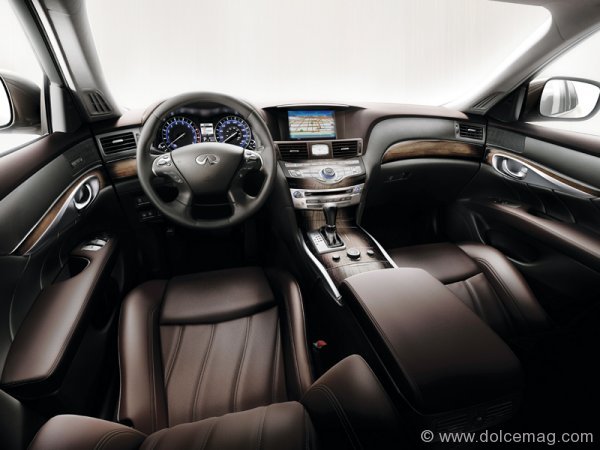 Once inside, the cabin will impress with its elegant and modern design. With the generous use of leather throughout, combined with tasteful application of silver powdered wood accents and metal trimmings, the cabin is luxurious. Pampering the occupants is a broad array of amenities expected in this class. A great feature is the available heated steering wheel that is truly appreciated on those cold winter days. Audiophiles will appreciate the available 16-speaker Bose system with surround sound and a hard drive for storage of up to 2,900 songs. The navigation system is unique with its 3-D graphics and also incorporates a rear-view display when reverse gear is selected. First time offered on Infiniti is the Forest Air system, designed to contain unwanted odours and keep the air smelling fresh within the cabin, which can keep the peace during long-distance travel.