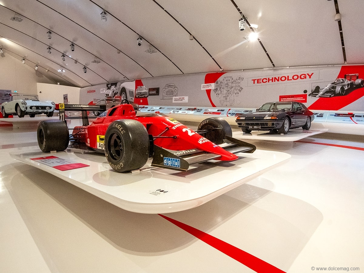 Move through to the technology space and you’ll see the 400 Automatic. Released in 1976, it’s the first 2+2 Grand Tourer fitted with an automatic gearbox, a response to market demand and international clients. It sits alongside the Ferrari F1-89, which holds another debut accolade: this time for being the first single-seater to integrate an electrohydraulic gearbox.