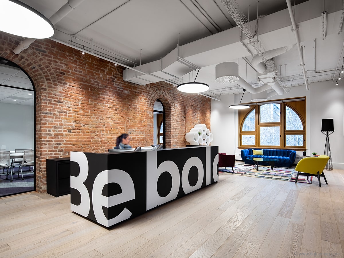 In collaboration with lighting agency LumiGroup, Inside Studio completed OneSpan’s head office relocation. The project was heavily informed by the former Windsor Station, where the offices are now based. The result retains original details, like sweeping windows, exposed brick and ornate doors, but adds modern fixtures to create a space that’s brimming with character.