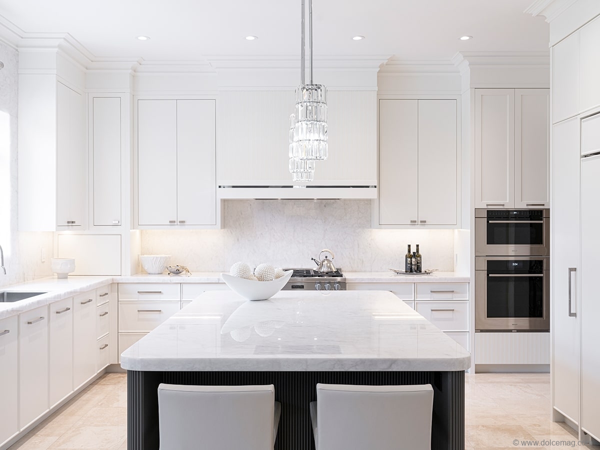 A recent project completed by Cameo Kitchen & Fine Cabinetry renovates a kitchen to give it a more contemporary look. By using white wood for the cabinets, a standout grey island and brushed nickel hardware for the space’s accents, the traditional kitchen has been transformed into something more modern and brighter.