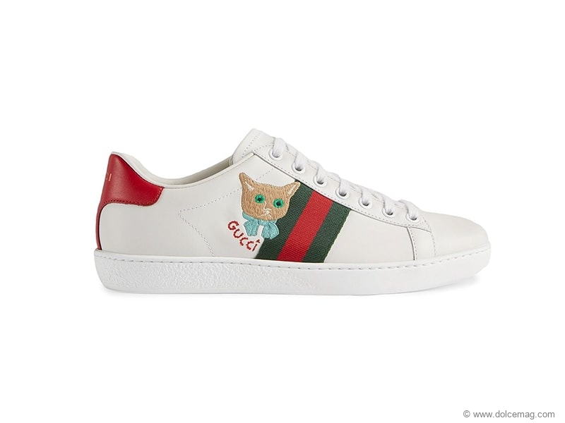 CATWALK Time to debut your catwalk by strutting the streets with these classic Ace leather laced sneakers by Gucci, enriched with a vintage-inspired cheeky cat embroidered on the side.
