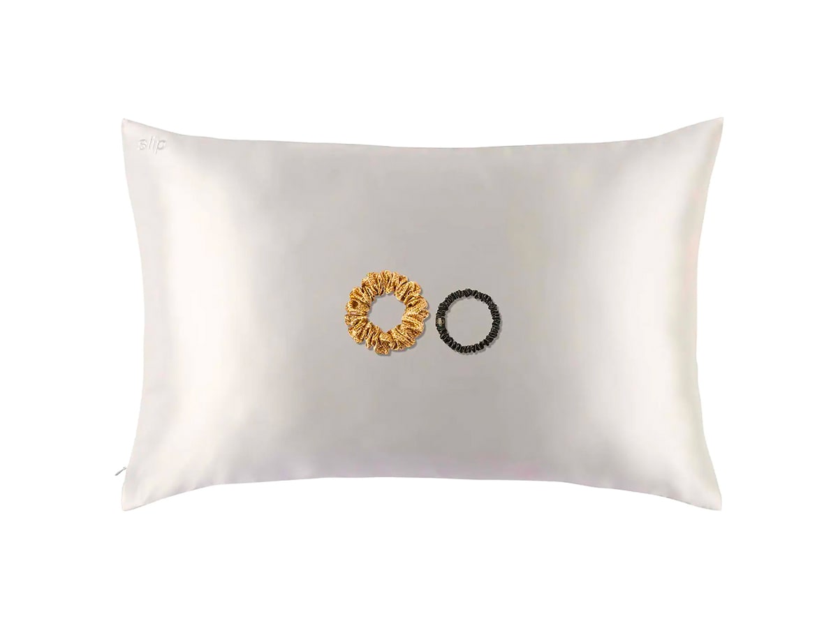 Silk bedding is the luxe upgrade everyone needs. This pillowcase gift set features Slip’s award-winning pillowcase and two scrunchies in limited-edition colours.