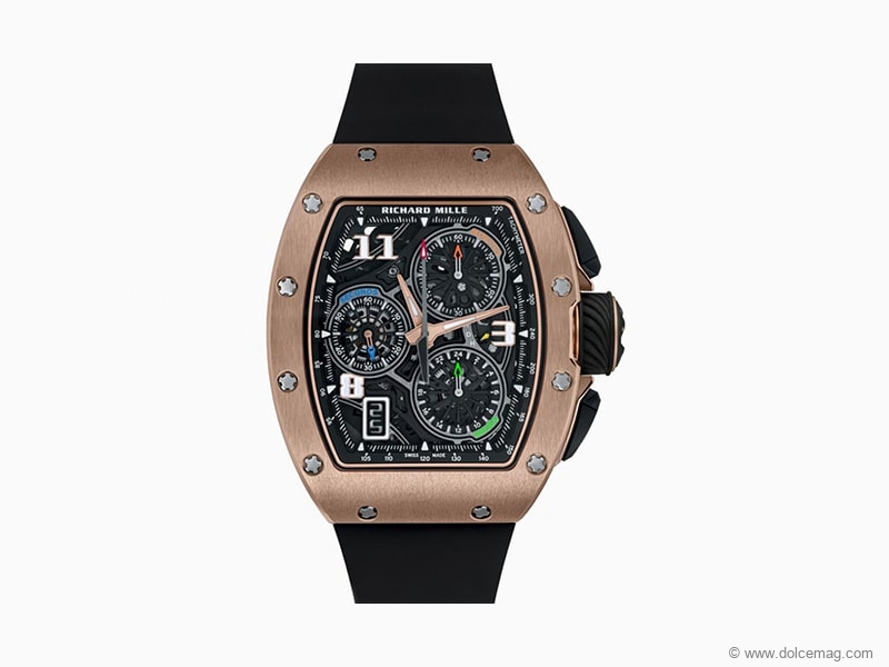 Equipped with the brand’s first in-house chronograph featuring a patented design, the RM 72-01 is simply a masterpiece. Everything about the watch was designed to emphasize uncompromising quality and optimize function. For example, instead of a casing ring, the movement is mounted on chassis-mounting rubbers fixed by titanium screws.