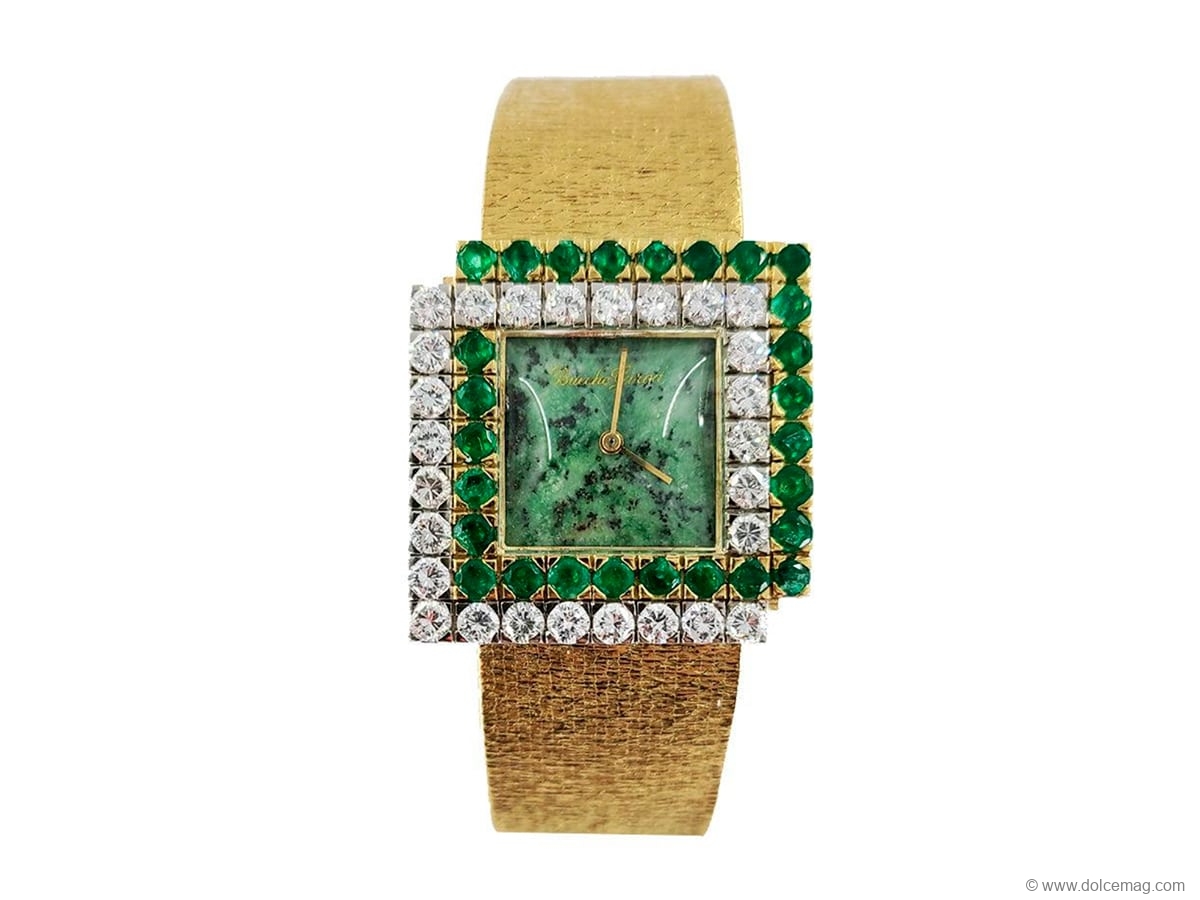 4. 18-Karat Yellow Gold, Jade, Emerald, & Diamond Watch Bueche Girod