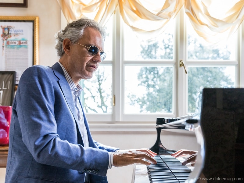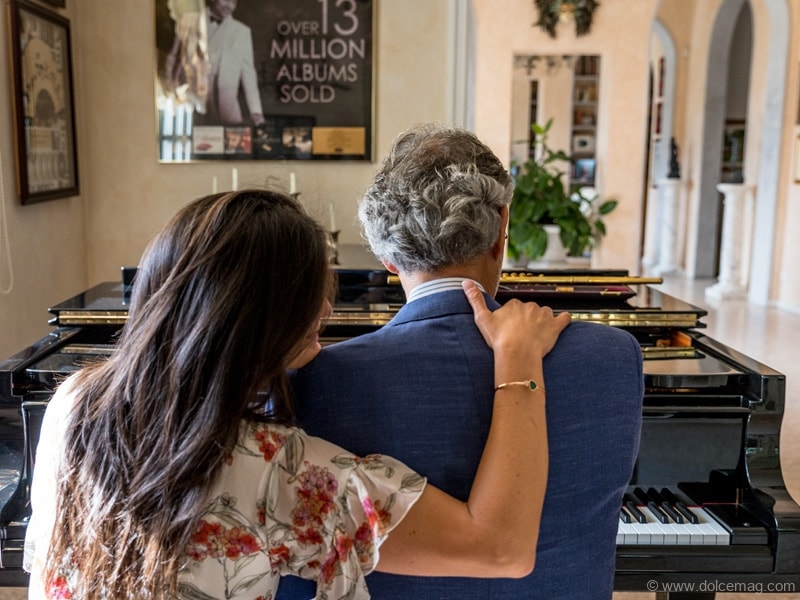 In early April, a team from Dolce Media flew from Toronto to Bocelli’s home in Tuscany, Italy, to be with the maestro as he reflected on some of his favourite childhood memories, his pre-singing career as a lawyer and his musical influences, which range from operatic greats such as Puccini and Verdi, to international pop icons such as Frank Sinatra, Paul Anka, Tony Bennett and Céline Dion. As our team prepared for the photo shoot and interview, Bocelli’s voice, accompanied by his piano, flowed through the room, a celestial aura, light-filled and energy-fuelled. The sensation, smoother than molten chocolate under-lit by a sparkler flame, was both sensual and spiritual. It was a summer breeze aria, full of bright red poppies dusted with the soft fragrance of pale pink roses.