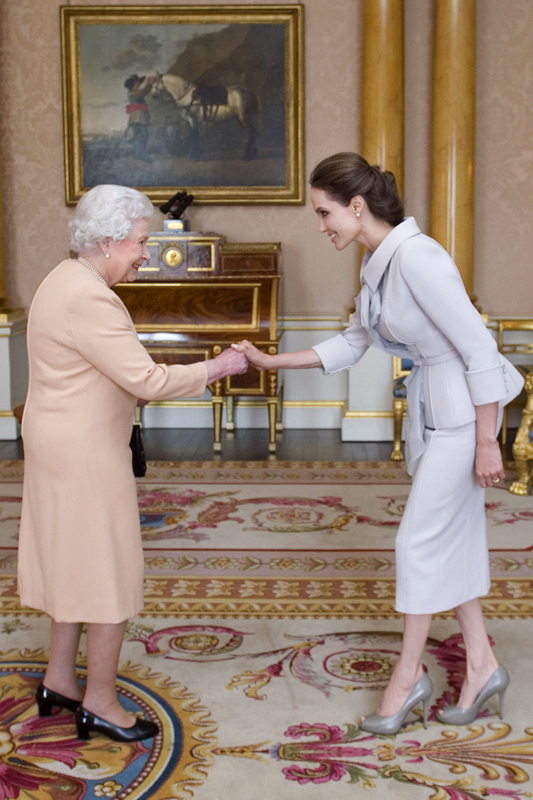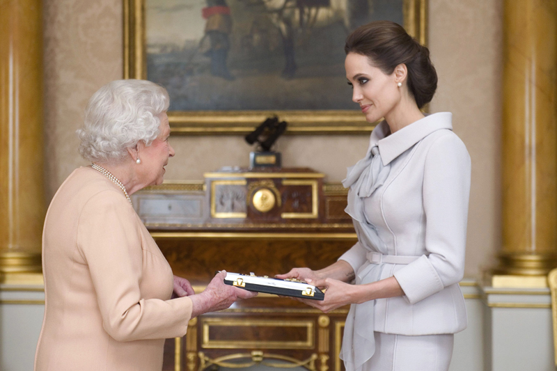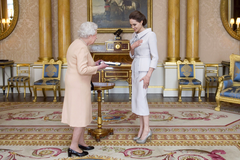A luminary on both the Hollywood and humanitarian scenes, Angelina Jolie spent her Friday morning at Buckingham Palace where Queen Elizabeth II awarded her with an honorary Damehood, the female equivalent of an honorary Knighthood. While the actor was named an honorary Dame back in June in the Birthday Honours List, she travelled to the Palace to pick up the award today.