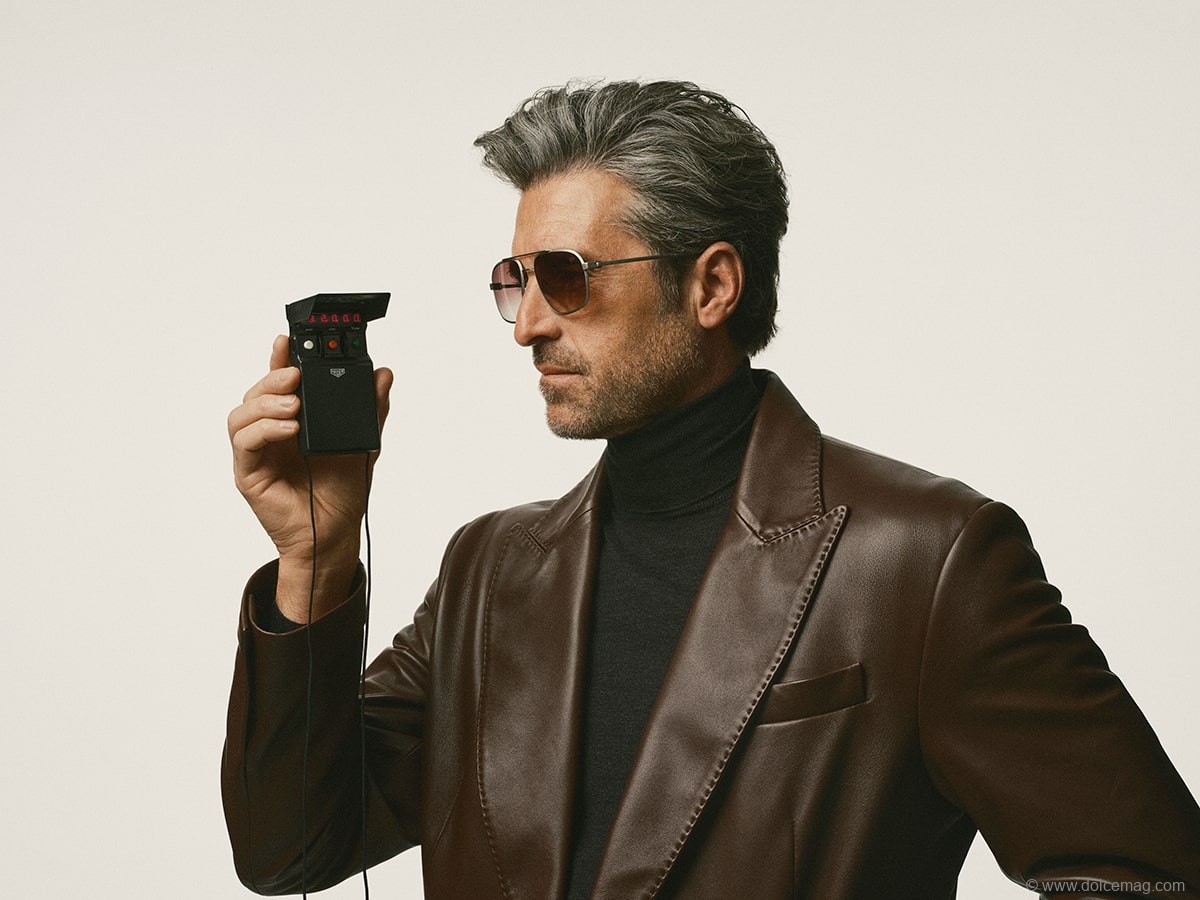 The campaign opens with a nod to the brand’s deep roots in racing culture. In a striking image, Patrick Dempsey mirrors a legendary portrait of Jack Heuer holding a chronograph, a pose that has come to symbolize TAG Heuer’s forging role in motorsport history. In the 2025 version, Patrick Dempsey wears two key models from the collection: the Jack Heuer and Mini Vingt-Sept eyewear lines. The result is both timeless and fresh, a visual bridge between heritage and what comes next.