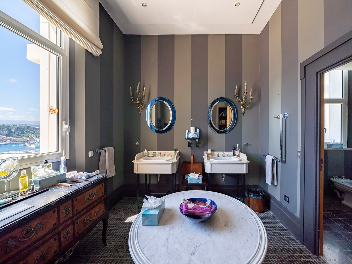 Sited on over one acre, Connery’s home is located along a winding path at the edge of a cliff with views of the Promenade des Anglais and the Old Port. Behind an entrance gate providing privacy from overzealous fans and paparazzi, the stone mansion is styled in the classic French architecture of the 1920s and dressed in colourful wisteria vines, adding more romance to its already idyllic setting. Built on five levels with an elevator and rooftop terrace, its five bedrooms and baths are distributed across all the floors. The entrance opens into the grand hall with floor-to-ceiling windows capturing more views of the mountains and sea. Wrap-around and garden terraces invite lounging, and the home’s period details, such as wide-planked parquet floors, run throughout the building. The main level also houses a family room and another room, and a kitchenette. The dining room and kitchen are located on the lower floor and open to a garden terrace. The upper-level master suite has his-and-her baths, a dressing room and a private balcony. The bottom level has a fitness complex with a gym and an indoor swimming pool that opens to the gardens, shower and dressing areas.