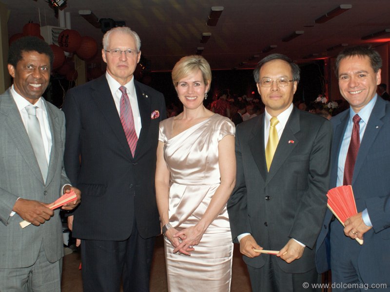 TOP LEFT: From left: Dany Laferrière, writer/co-chairmen of the event; André Desmarais and Michèle Dionne, Lan Lijun, ambassador of the People’s Republic of China in Canada and Michel Leveille, general manager of the Red Cross in Quebec. TOP RIGHT: From left: President and chief executive officer of the Caisse de dépôt et placement du Québec Michael Sabia; Monique Leroux, president and CEO of Desjardins; and André Desmarais, president and co-chief executive officer of Power Corporation, who also co-chaired the event. ABOVE LEFT: From left: Jacques Ménard, president of BMO; Lucien Bouchard; Michael Fortier and Conrad Sauvé, secretary-general and chief executive officer of Canadian Red Cross. ABOVE RIGHT: Joseph Basmaji, president of Boutique Jacob, accompanied by his wife, Odette Basmaji, owner and vice president of Division, Corporate Responsibility Boutique Jacob; Pierre Schedleur, president and CEO of Société générale de financement du Québec and longtime partner of the Canadian Red Cross.