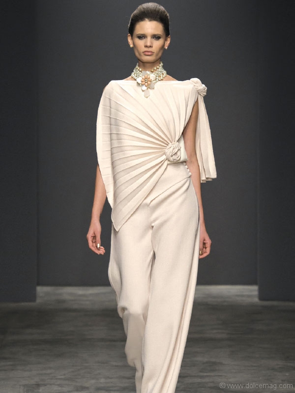 Camillo Bona and Sabrina Persechino debuted their best nudes (and darks) on the AltaRoma catwalk. Bona’s floor-length designs are the picture of sophisticated glamour and explore eye-catching floral details in patterns, textures and trims. Similarly, Persechino wowed with geometric rigour and masterful tailoring in her very sleek, linear collection of silky ensembles.