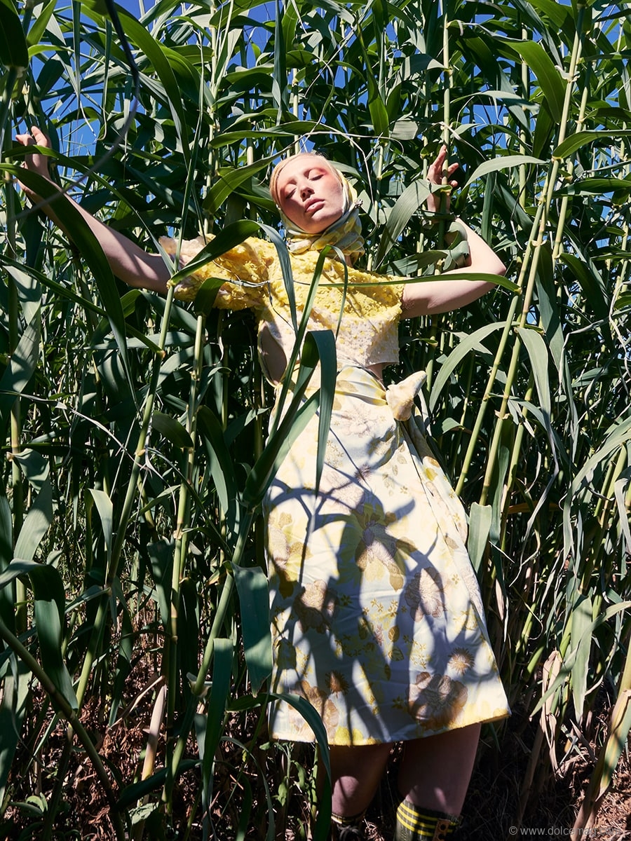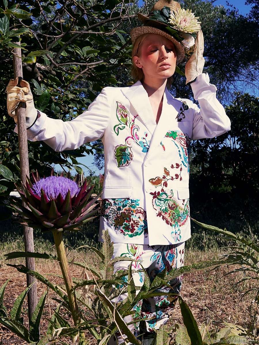 The 2023 Resort Collection: The Story of Orlando: Confessions of an Apprentice GreenGrocer is a true work of creative expression. This collection has no boundaries as the theme is to escape one’s reality and go to nature where there is no negativity. This feeling of a truly idyllic utopia is expressed through the freefeeling and mix-matched looks, which include a multitude of prints as well as crossing masculine and feminine elements that feel free yet have intent. The Story of Orlando has a nuanced feel that only a true artist could create.