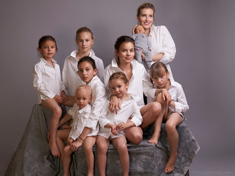 The rest, as they say, is history. The design powerhouse collaborates on Rémi Tessier Design projects together, transforming private residences, yachts and private jets with timeless and sophisticated interiors. It is safe to say, however, that the Tessiers’ professional collaboration is not the pinnacle of their work. Today, they have nine children together, having recently welcomed a newborn girl in early July 2021. It’s hard to believe that Carole, who exudes the air of the model who has just stepped off of the runway, is a mother to nine children — Sienna-Rose, Lou-Victoria, Ambre-Camelia, Diane-Opale, Kiara-May, Jade-Hermine, Oscar-Louis, Charly-Victor, and their latest addition to the family, daughter Ornella-Joyce.