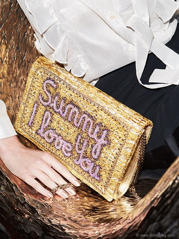 Tessier describes la Dolce Vita in a way that evokes the scenes depicted on some of her bespoke clutches: “It means to wake up in the morning in the sun and to have a nice walk somewhere in a nice little village, and when you can eat an easy lunch with natural vegetables, and simple fish with olive oil, a little rest in the afternoon, and a nice bath in the sea afterwards in a nice swimwear and a nice cappuccino at the terrace — that would be the perfect summer day for me.”