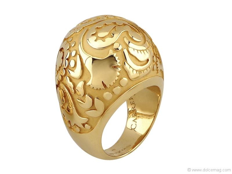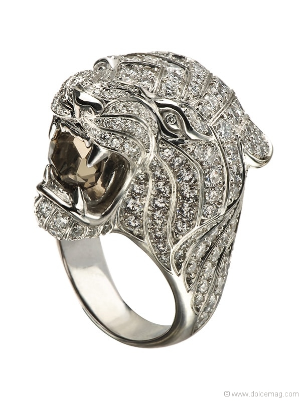 Carrera’s designs feature flowing volume, shape and symbols that embrace myriad storylines (many of them Carrera’s own): there are human themes based in the feminine and, famously, fanciful depictions of the animal kingdom. These unique takes set apart Carrera y Carrera’s breathtaking jewelry, including its collection of rings, earrings, bracelets, pendants and cufflinks. The Bestiario collection, for example, features lions, tigers, serpents, leopards, elephants, monkeys and butterflies, sculpted and positioned to capture their inherent strength and life force. The Tesoros del Imperio collection, inspired by the paintings of Diego Velázquez, one of Spain’s greatest painters, reflects the most fruitful period in Spain’s history. Its exquisite mix of gold, diamonds, amethysts and sapphires evokes the colours of Spain’s Golden Age. The Círculos de Fuego (circle of fire) collection draws from the mystery of fire dragons, which are revered in Asian culture. Horses, which have a prominent place in art history, are represented in the company’s Ecuestre collection, which evokes power and elegance as a golden tribute to the famous Andalusian (the pure Spanish horse).