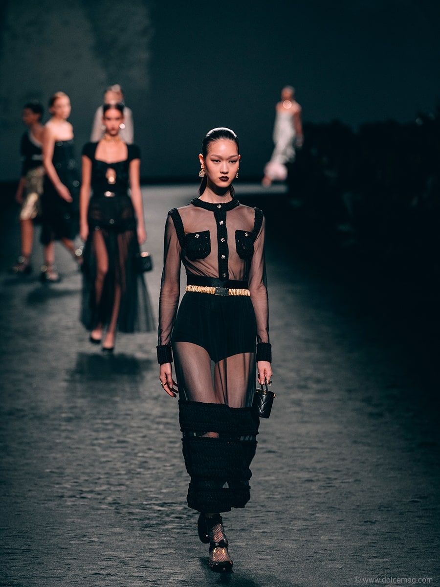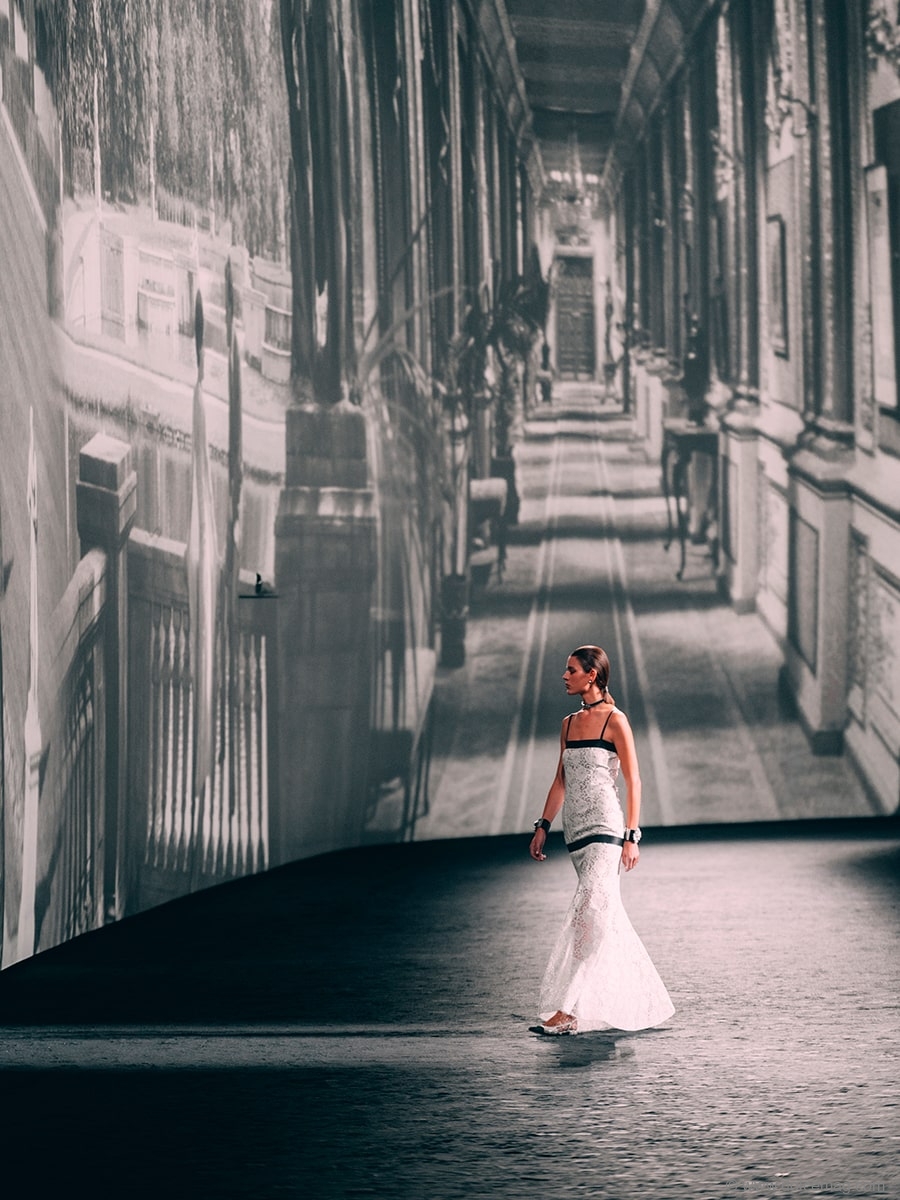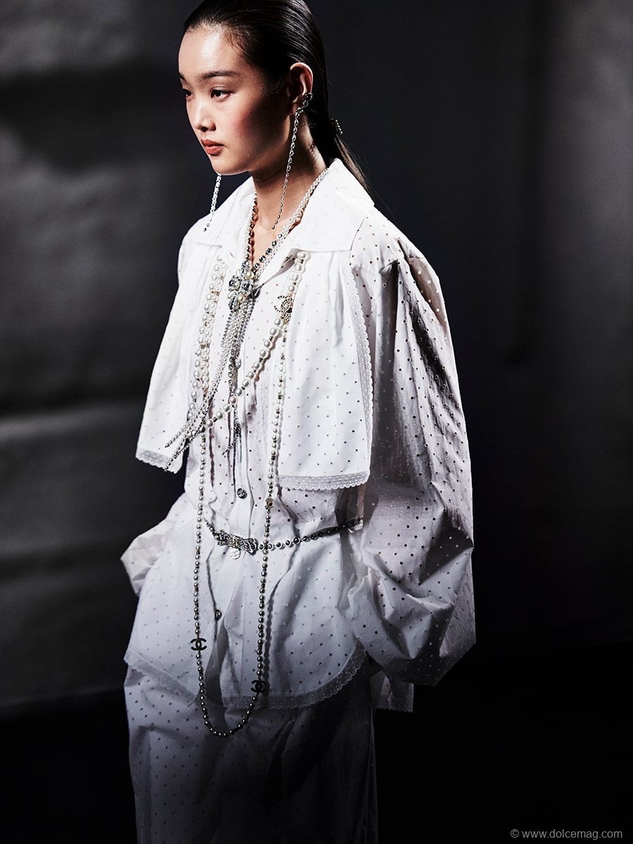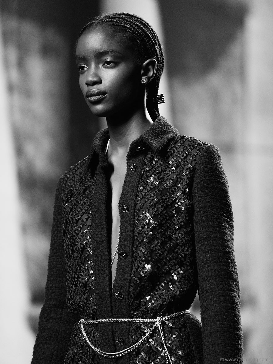 “The films we have seen … those that possess us and those we invent for ourselves, Marienbad, the Nouvelle Vague, the allure according to Gabrielle Chanel, Karl, the night, feathers, sequins, heels … I like it when things get mixed up,” observes Virginie Viard.