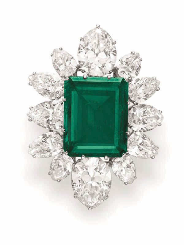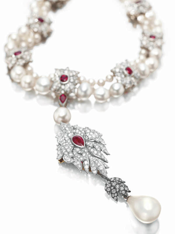 Numerous world auction records for jewelry were established, including a new record price for any pearl jewel, any emerald jewel and any Indian jewel. New record per-carat prices were established for an emerald, a ruby, a yellow diamond and for a colourless diamond. In addition, a record price was set for a pair of natural pearl ear pendants sold at auction.