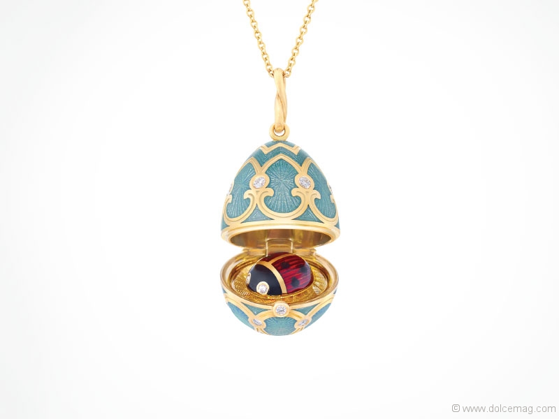 5. Treasured by leading museums and private collectors, an irresistible objet d’art to own. Iconic House of Fabergé introduces the new Heritage Collection — a turquoise guilloché enamel and diamond locket in 18k yellow gold.