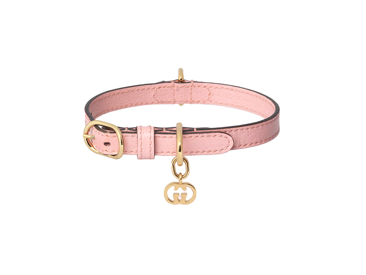 This collar is crafted from animal-free raw materials, primarily from sustainable renewable and bio-based sources. The pastel-pink Demetra accessory is completed by a mini “Interlocking G” charm.