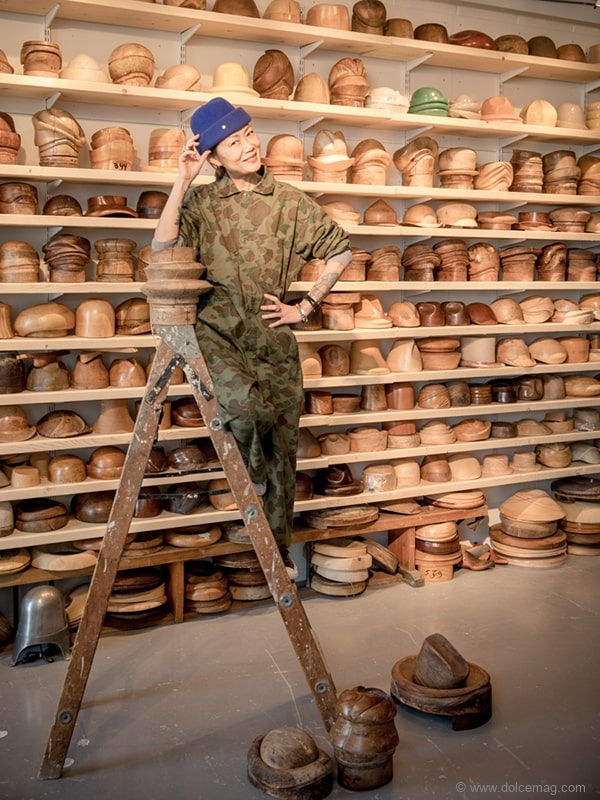 Her love for millinery started the day she attended her first class. The way Cheng describes her passion and magnetic pull toward the quirky wooden blocks sound like the greatest love affair you’ve ever heard: “The teacher said go into the next room and find the shape that speaks to you and bring it back to the classroom. So, I walked into the tiny room filled with hat blocks, which define the shape of the hat that you will make, and I walked in there, and the room, lined with shelves from the ground up to the ceiling packed with all these wooden shapes, the smell, the sight, the touch, I just fell in love, right at that moment. I brought the shape into the room. Just holding it, feeling the block, this is it, this made me curious, this speaks to me. I felt that romantic vibe, that fire lit up in me, and once we started learning the technique, it’s like I never looked back.”