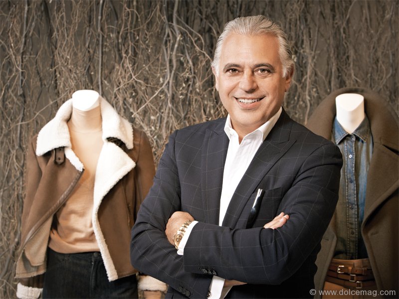 Not a salt or pepper strand out of place, Mimran appears to live his life under the soft glow of a Floridian sun rather than the harsh glare of fluorescent lights. His navy suit fits like a cashmere-lined leather glove, and his feet look just as comfortable in his signature velvet Church’s slippers. In an industry where image is everything, Mimran gets a standing ovation. The conversation moves to a sleek long table in his contemporary glass office, where all the planks in the runway start to form a story. It’s there, glancing out into the expansive factory workspace reminiscent of a dressed-up New York newsroom, that one wonders how this silver fox pulled such a lucrative rabbit out of his hat.