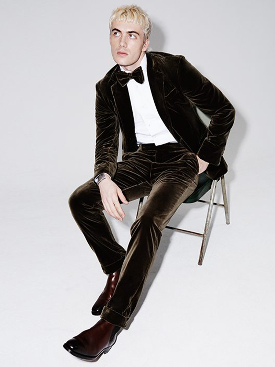 Look for fine Italian craftsmanship when you want to go above the suit standard. Velvet tuxes have the holiday party spirit.