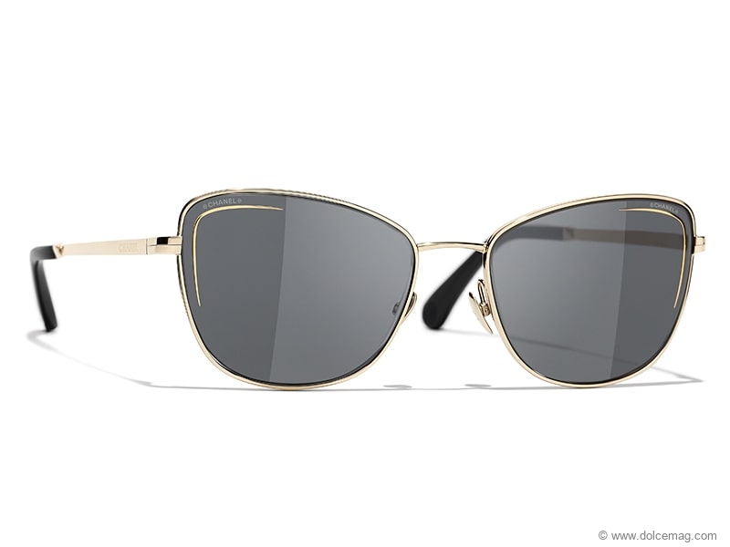 1. These flirty cat’s-eye shaped sunglasses feature intensely black lenses revealing their demure and sophisticated gold insert — reminiscent of Gabrielle Chanel’s taste for gold.