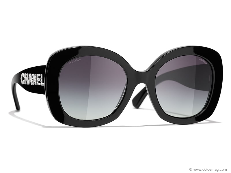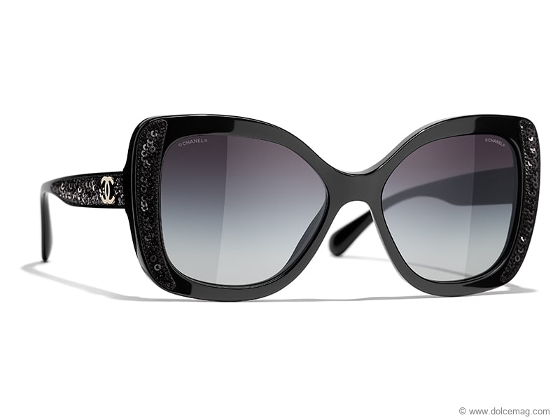 2. Often taking inspiration from materials like tweed, leather and denim from Chanel’s Ready-to- Wear collections, these sunnies feature black micro-sequins on black acetate frames, revealing the letters “Chanel” in silver metal.