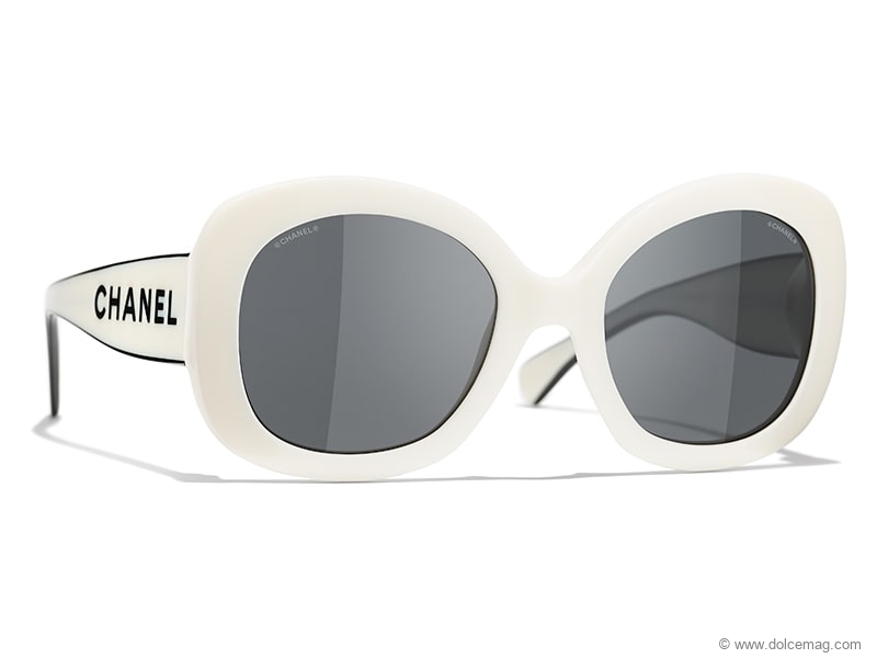 3. Chanel’s black-and-white two-toned sunglasses are accentuated by a square frame with rounded edges, as well as white acetate temples that put a spotlight on the bold “Chanel” letters in black.
