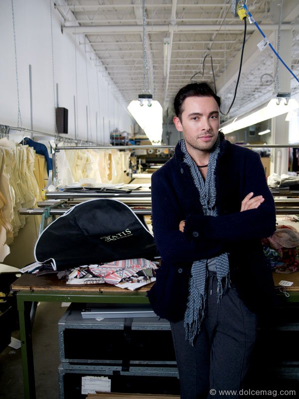 I love — I’m addicted — to work. I love being here, just experimenting with fabrics and having a good time with my staff, you know. It’s fantastic.” With that he eagerly leads the way to a commodious back workroom, where employees are stitching and sewing, priming runway-worthy pieces. “Fashion isn’t all about the glamour,” says Matis, who gained sartorial success as the runner-up on Project Runway Canada in 2007. The subdued scene is an antithesis to the backstage storm of a fashion show: a tempest of frenzy, in all its light bulbs and fracas, peals of laughter and neon lipstick, pasties and puffed-up egos, vindication and vanity. “Moments before the show I become a bit of a tyrant. Everything has to be perfect.”