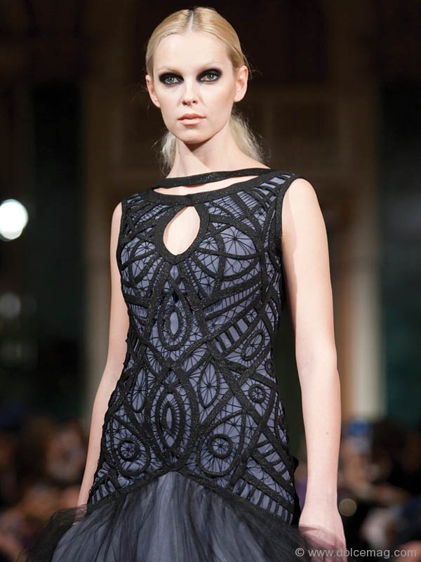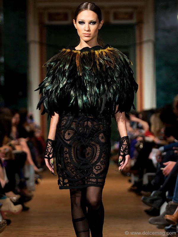 “When I create, I don’t tend to listen to music or to be influenced, because anything from the outside challenges and changes your ideas, your perspectives and your work. I just create in silence, and I get inspired by so many things,” says Matis, who turned collective heads earlier this year at World MasterCard Fashion Week. Palpable yet incorporeal like a cast of long shadows, his fall/winter 2012 collection of carefully crafted lace lattice was made by hand using the 19th-century knotting technique of macramé. “It was definitely a heavy, romantic, dilapidated beauty. It had to be something that’s not tangible, but you feel something and you don’t know why you feel that way. I feel like this is where I started my career.”