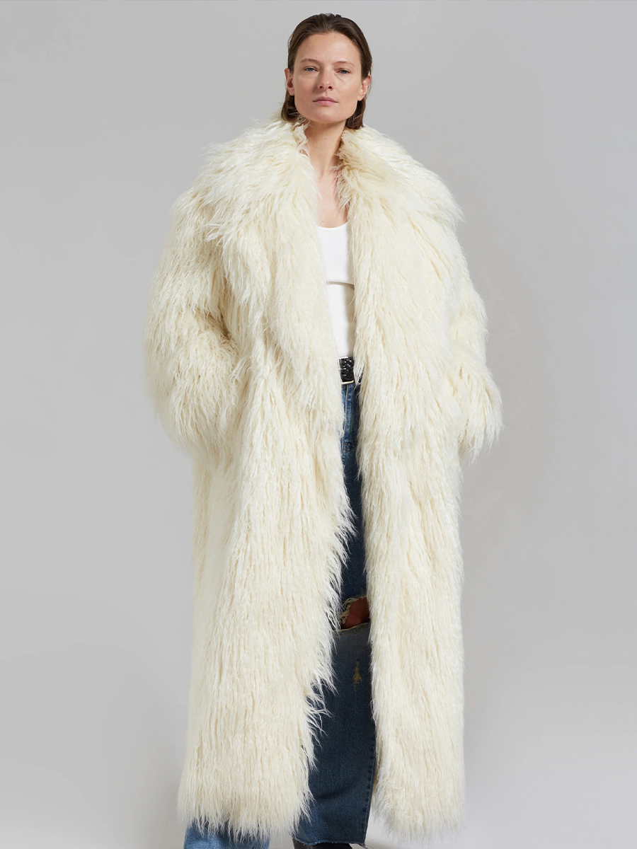 12. “Nicole” long faux fur coat