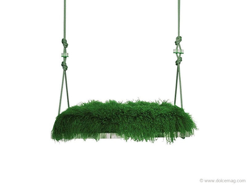 2. Pick-Me-Up Indoor Swing: A single-seat indoor swing, complete with Tibetan lamb cushion, is hand-dyed and available in various colours.