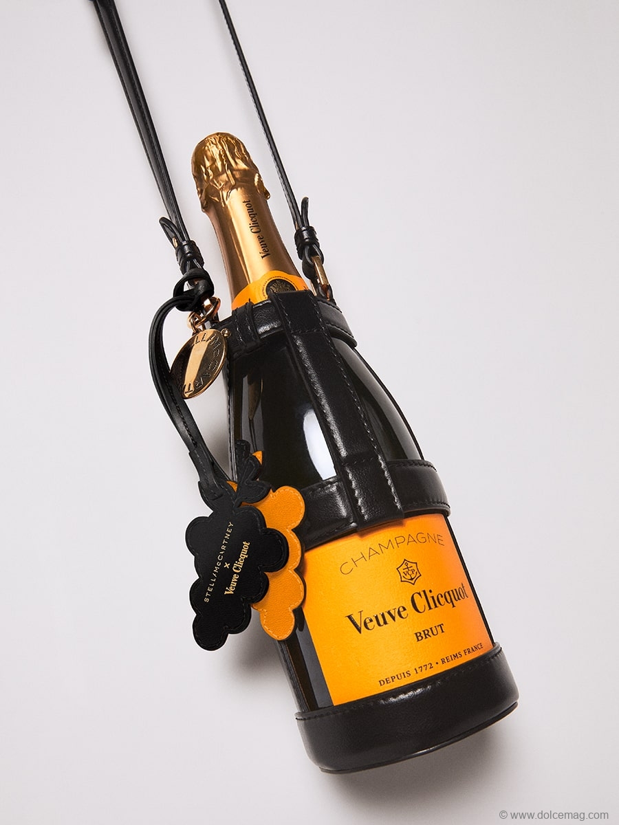 The Frayme bags and Elyse sandals are available at Stella McCartney boutiques and online. The first limited-edition bottle-holders have sold out; subscribers to the Veuve Clicquot newsletter will be informed of their future availability.