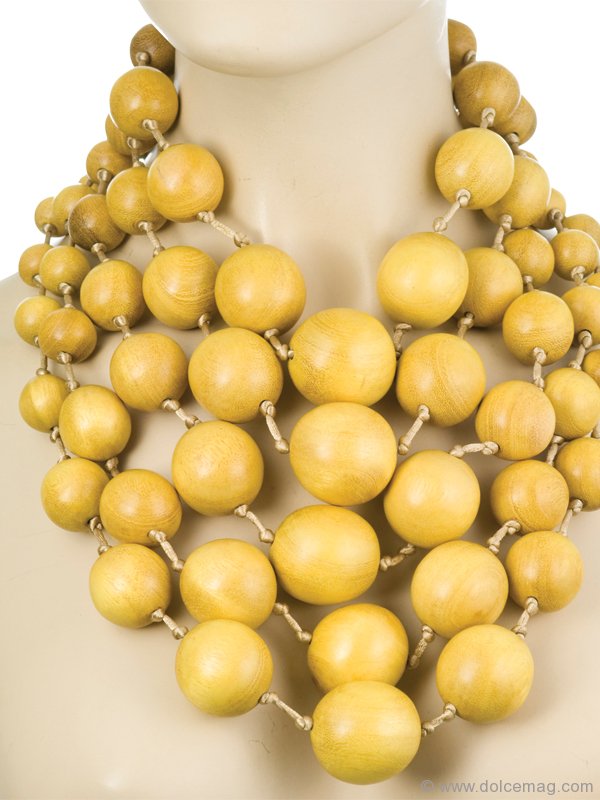 Holly Brubach, former fashion writer for The New Yorker and a creative consultant for Yoox.com, feels fashion lovers should keep their eyes out for several of Apfel’s striking pieces, which include a 15-strand necklace made from small black kamagong wood beads, Buddha earrings and rhinestone flower cuffs.