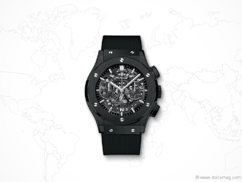 3. The 45mm Aerofusion Black Magic by Hublot, with sapphire crystal and polished rhodium plated dial