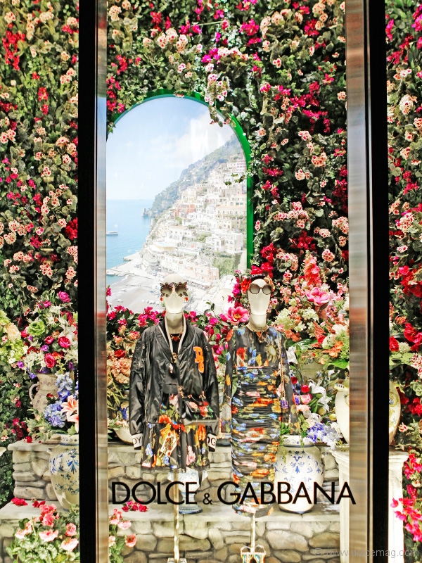 Among a garden of flowers, looking over the coast, two bodies appear. Blending in while standing out. Dolce & Gabbana invokes your imagination and makes you work to see its beautiful creations in this window, and once you see them, you won’t be able to look away.