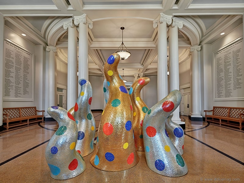 It would be an injustice to not let artist Yayoi Kusama’s own artistic language describe her current exhibition, KUSAMA: Cosmic Nature, at the New York Botanical Garden, running until Oct. 31: “Dancing through our universe are noble souls whose magnificent forms are saturated with mystery. I invite you to explore the endlessly expanding ode to the beauty of love that is my art.”