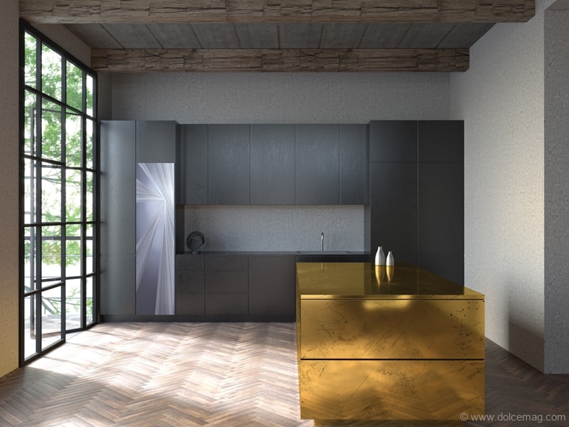 Channeling his fashion esthetic, Posen and the Monogram team settled on a mirrored surface. Posen says, “I thought, for a fashion designer who cooks and has this other passion and whole other side, that when I’m in my apartment often, I want to be able to check my outfit in the mirror.”