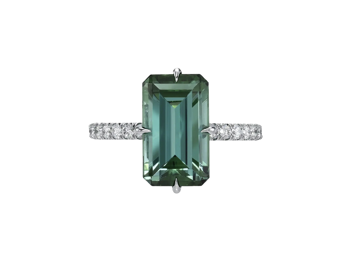 2. 4.75-Carat Bluish-Green Tourmaline Elongated Emerald-Cut Platinum Ring