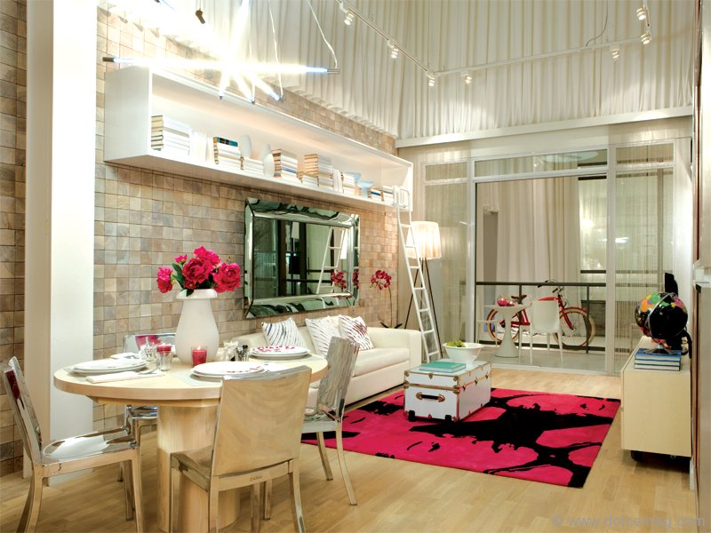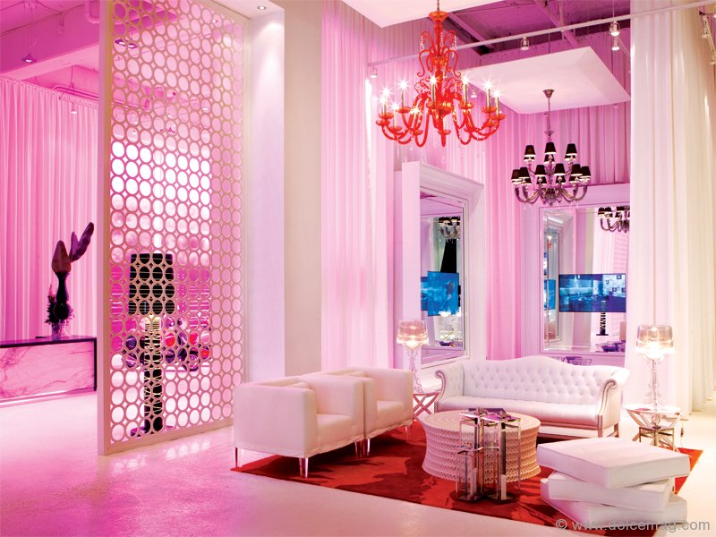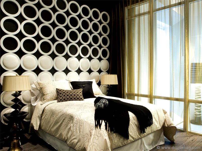 Iridescent white and lilac purple invades the room. A diamond chandelier reflects through the glass table beneath the combination of zebra-patterned serviettes and a white vase filled with black balls. Pallid chairs sit parallel to the translucent dishwasher with a marbled, glazed white and black-veined top layer, which holds a silver faucet and a large, glossy white ornament that’s shaped like a lamp with thin arms. This is the South Beach Delano Model Suite, a creation of II BY IV Design Associates. “Black and white, timber and natural woods with a high-gloss, lacquer finish defy time and continue to be a 2010 trend,” says Dan Menchions, co-founder and designer of contemporary Canadian design firm II BY IV, which he founded with partner Keith Rushbrook in 1990.