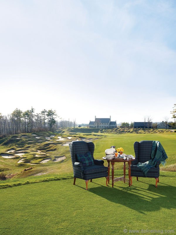 The shoot took place on an unforgettable day and my husband says he will never forget being on the golf course and seeing plaid wingback armchairs drive by in the back of a golf cart. As a designer, for me this was just another day on the job …