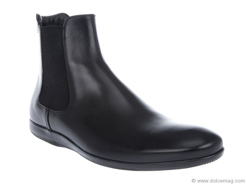 MacPhee slips on his black leather Prada Chelsea boots to give him that extra kick. www.prada.com
