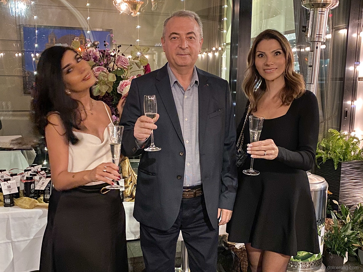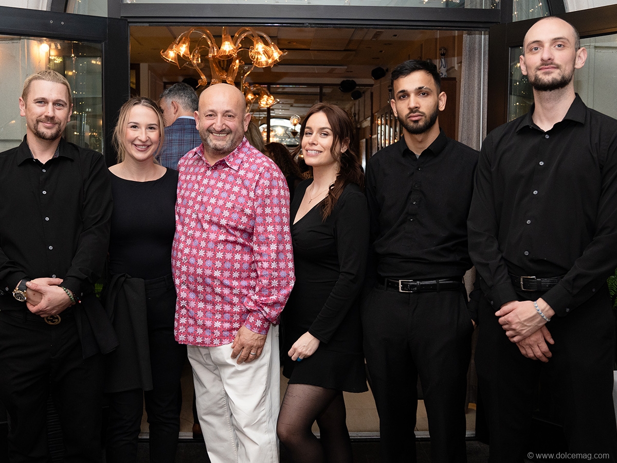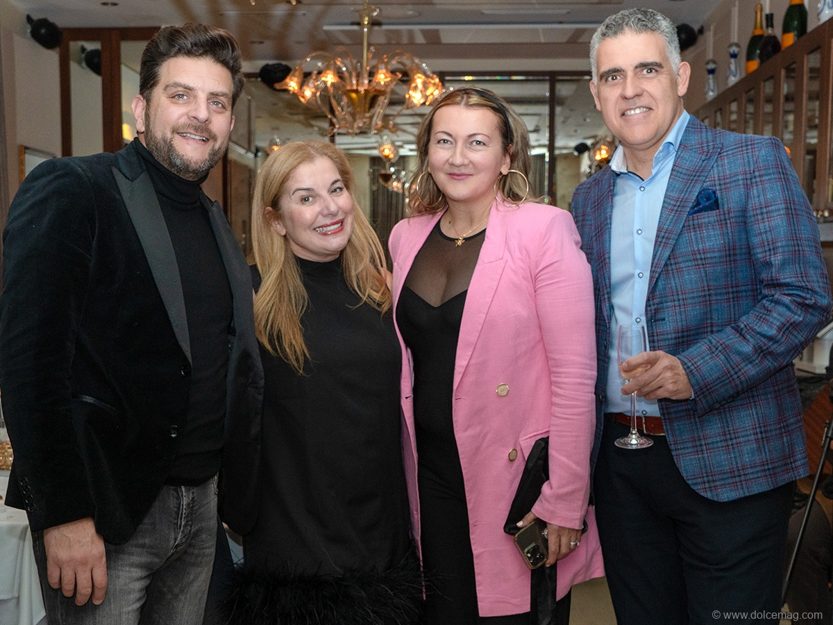 With the holiday season fast approaching, Dolce’s fifth dinner in a series of curated dinner parties took place on November 13th, in perfect time to set the mood for the upcoming season of joy and giving. Guests enjoyed a delicious five-course menu at Sotto Sotto in Oakville, the second location for the Toronto restaurant that has been a long-time favourite dining spot for A-list celebrities and that city’s well-heeled. The Oakville outpost is located at the street level of the prestigious Randall Residences in Old Oakville, a lakefront neighbourhood known for its beautifully preserved heritage homes and charming streets lined with upscale restaurants and boutiques. Upon entering the restaurant, guests stepped into the stylish bar area backed by a large framed-glass wall that offered a glimpse of the kitchen team busy at work. From there, guests proceeded to the main dining space, which features high ceilings and large, gracefully arching windows. The refined ambiance created by candlelit tables and their elegant place settings under the soft light cast by the Italian floral- inspired hand-blown glass chandeliers immediately drew guests to the intimate space.